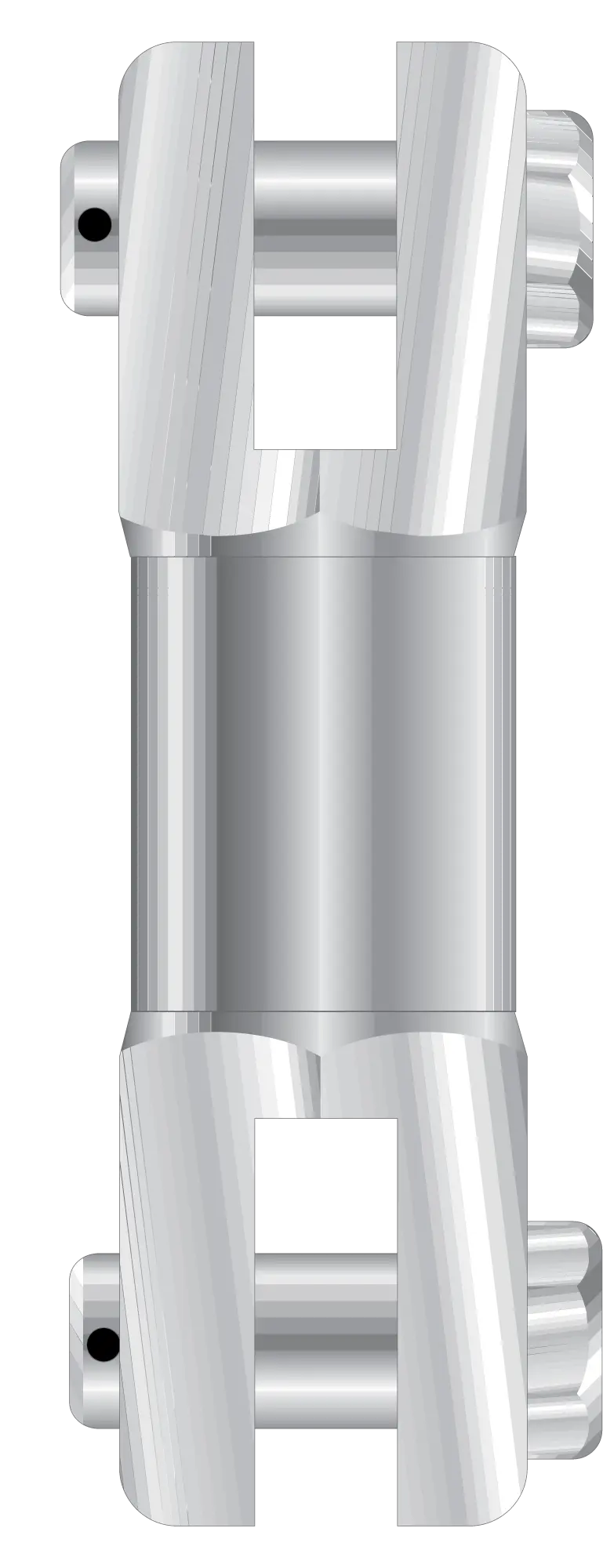 Non-swiveling, dual clevis (fork/jaw) fittings.